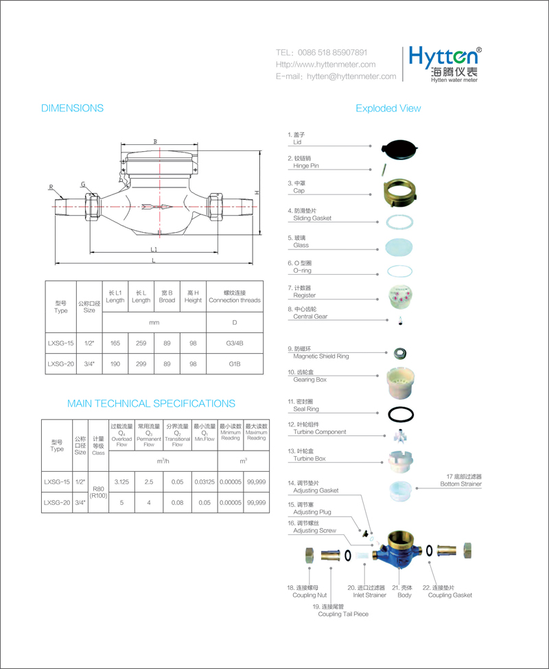 LXSG-15-20m 多流速旋翼干式小型冷水表